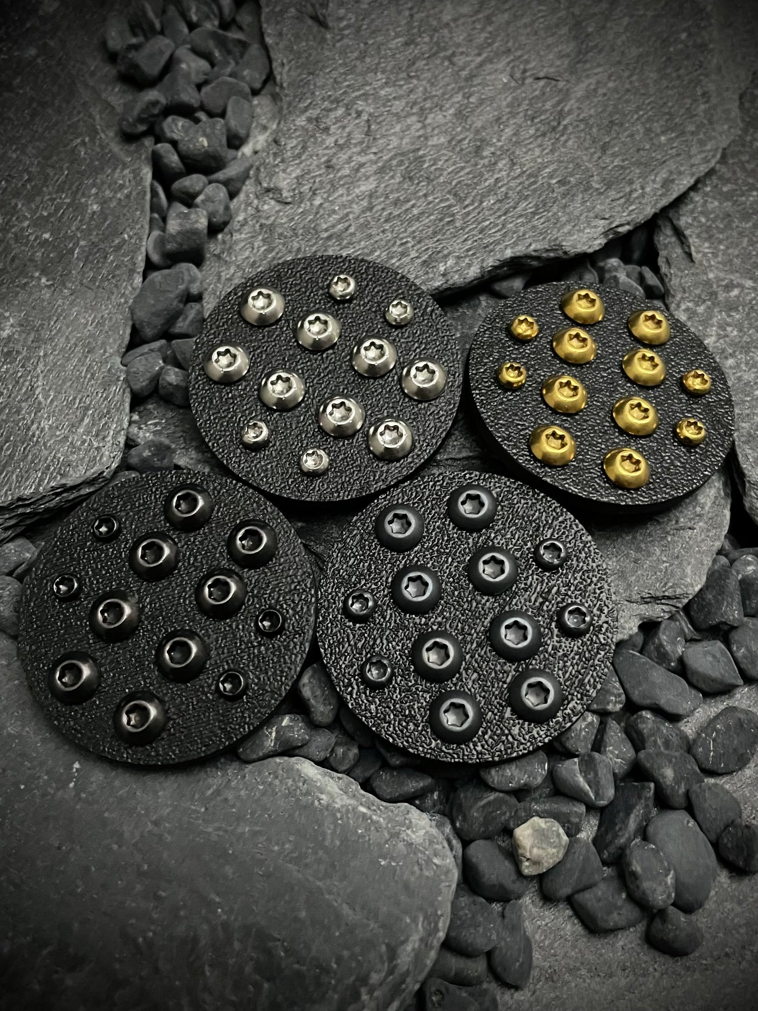 The AEON has lots of different options for hardware materials and finishes. Everything except the t8 body screws are stock and can be sourced through popular hardware sellers like truelink of USA knifemaker. The body screw shaft needs to be .140" long to not poke through and hit blade. Because of this we do recommend just buy the Hardware from us since it is cut to size already.