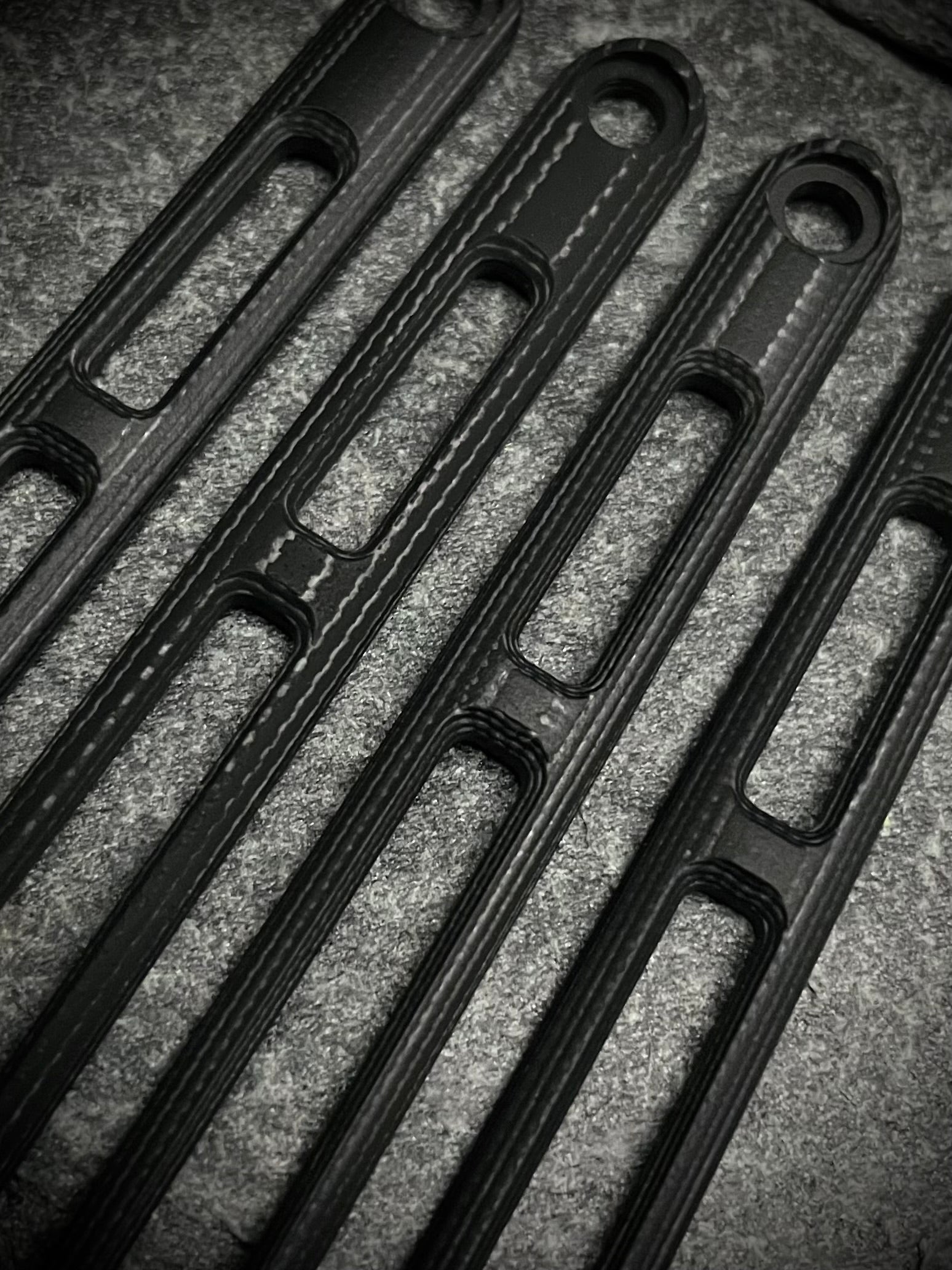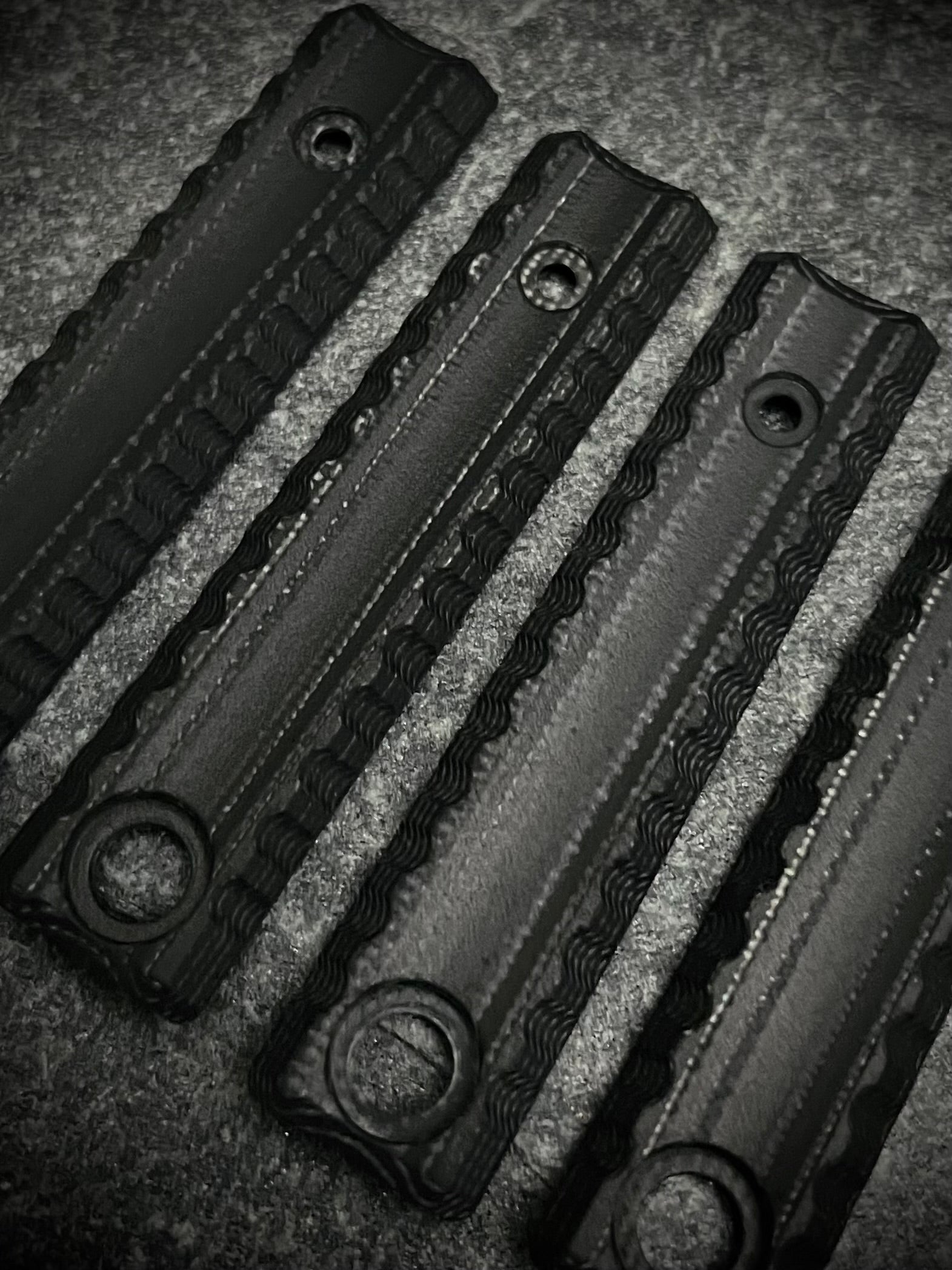 These scales are just aesthetically blemished but functionally fine. The particular g10 used had very distinct and inconsistent layering which unfortunately don't match enough to be acceptable. They almost have more of a twill look than the uniformed look of solid colored g10.